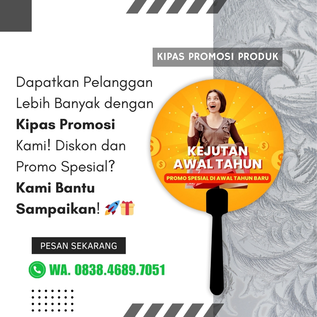 - Kipas promosi dapat digunakan untuk berbagai acara, seperti pameran, seminar, workshop, dan event-event lainnya. Kipas promosi juga bisa dibagikan sebagai souvenir atau hadiah kepada pelanggan.
